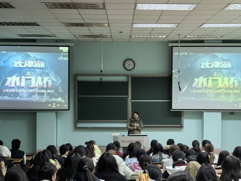 2025年10月21日晚,江苏食品药品职业技术学院马克思主义学院小马快跑社团在教学楼B218成功举办“光影中的马克思主义”主题观影活动。近150名学生通过集中观看抗美援朝题材影片《长津湖之水门桥》,在光影叙事中重温革命历史,感悟马克思主义的真理力量与实践光辉。