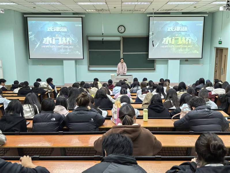 活动在庄严而凝重的氛围中开始。社团指导老师胡悦从“用好红色资源,传承红色基因”的角度介绍了本次观影的教育意义,指出《长津湖之水门桥》不仅是一部战争片,更是一堂生动的爱国主义与理想信念教育课。影片聚焦“水门桥”战斗,展现了志愿军战士在极寒严酷环境下不畏强敌、不怕牺牲的英雄气概,深刻诠释了马克思主义关于人民主体、斗争精神的历史自觉与时代价值。