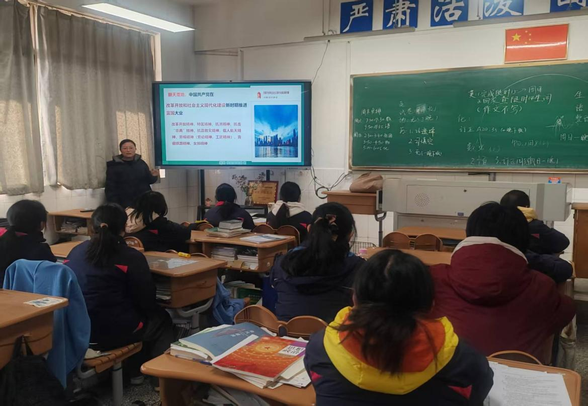 12月28日下午,马克思主义学院副教授张蓓应邀赴江苏省淮阴中学,面向40余名高一学生讲授“中国共产党人精神谱系”专题思政课。