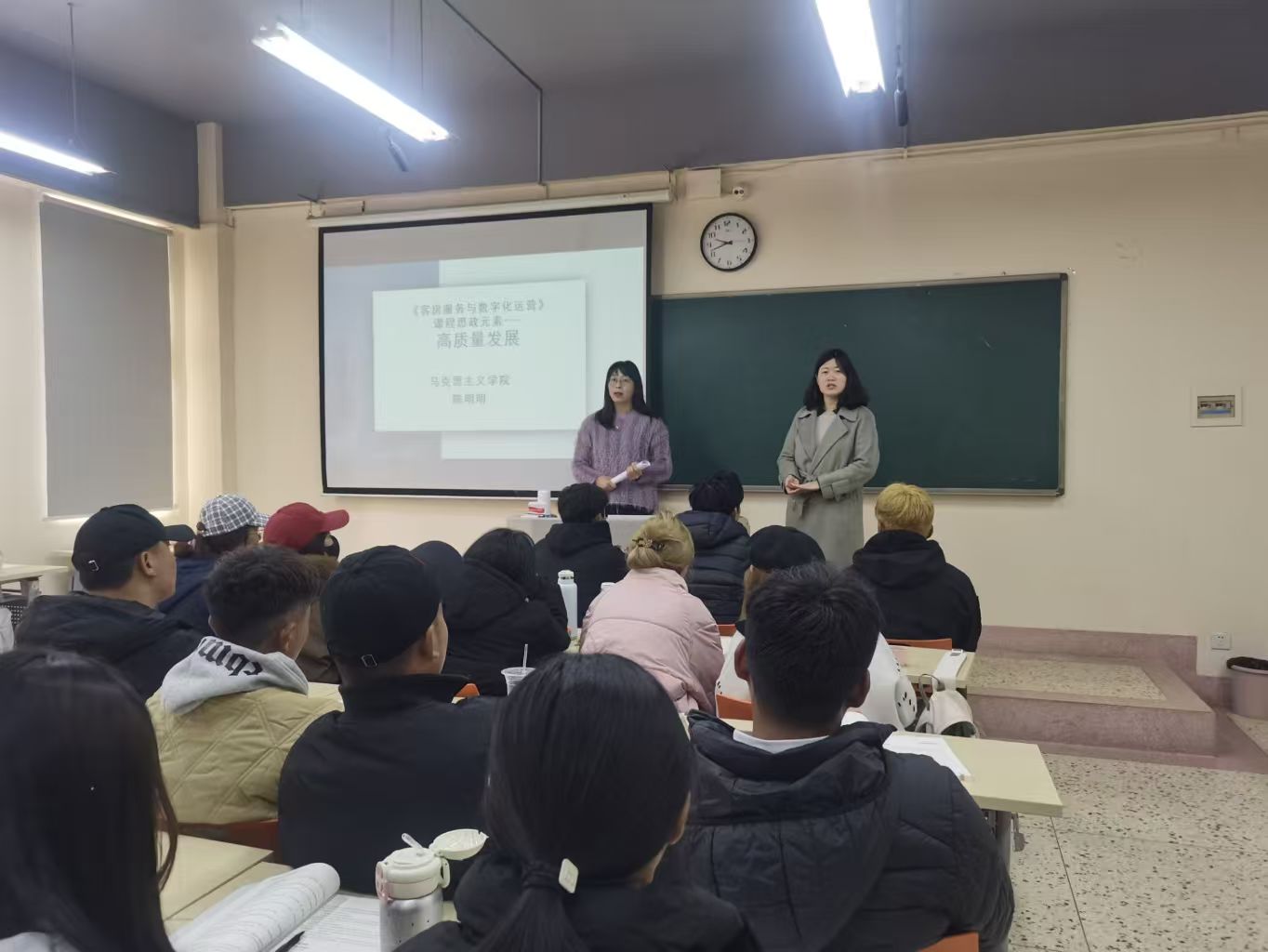 11月18日,马克思主义学院挂职副院长陈明明走进《客房服务与数字化运营》课堂,以“数字化赋能客房服务高质量铸就行业未来”为主题,将高质量发展理念与专业技能教学深度融合,为学生带来了一堂别开生面的沉浸式思政课。