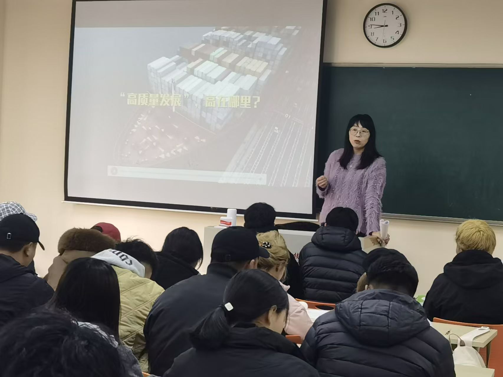 陈明明结合数字化运营趋势,层层递进解读高质量发展的内涵。在讲到客房清洁标准化流程时,她将“精益求精的工匠精神”与酒店服务质量标准相结合,指出“高质量发展不仅是国家经济发展的要求,更是酒店行业的生存之本,客房服务的每一个细节、每一次规范操作,都是高质量发展在基层岗位的具体实践”。她通过对比传统服务模式与数字化运营的效率差异,引导学生认识数字化转型对现代服务业高质量发展的推动作用,鼓励学生树立创新思维,主动适配行业发展需求。