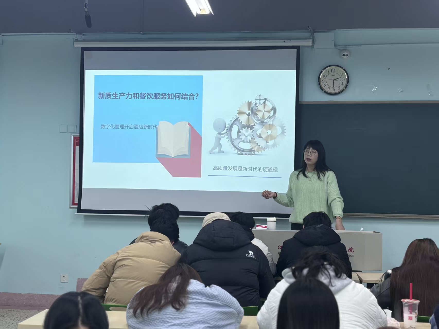 11月21日,陈明明走进酒店学院《餐饮服务礼仪》课堂,以“新质生产力背景下餐饮服务质量提升”为核心,开展沉浸式课程思政教学。