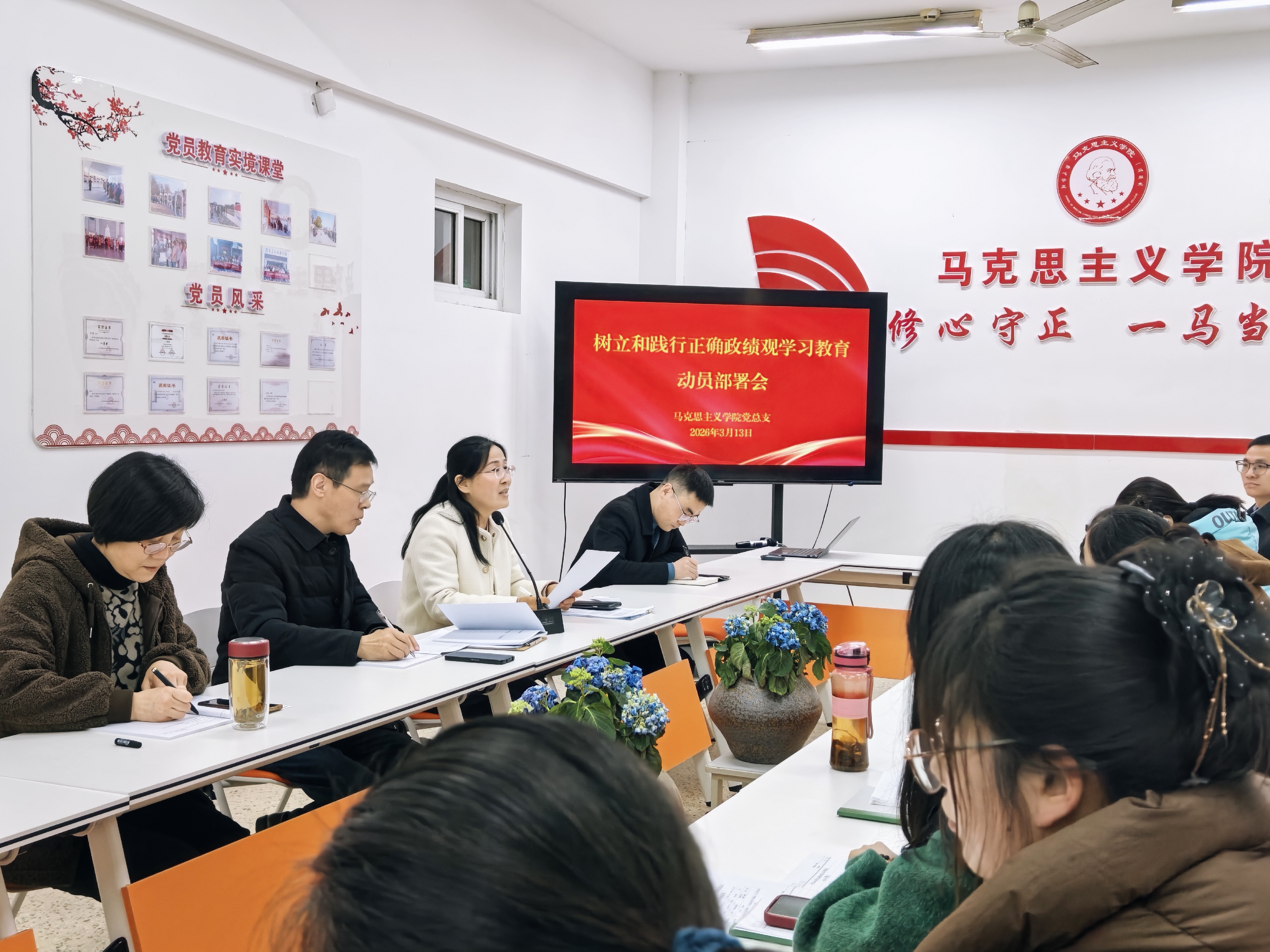 3月13日,马克思主义学院党总支召开树立和践行正确政绩观学习教育动员部署会,党总支书记李乐霞主持并作动员部署讲话。
