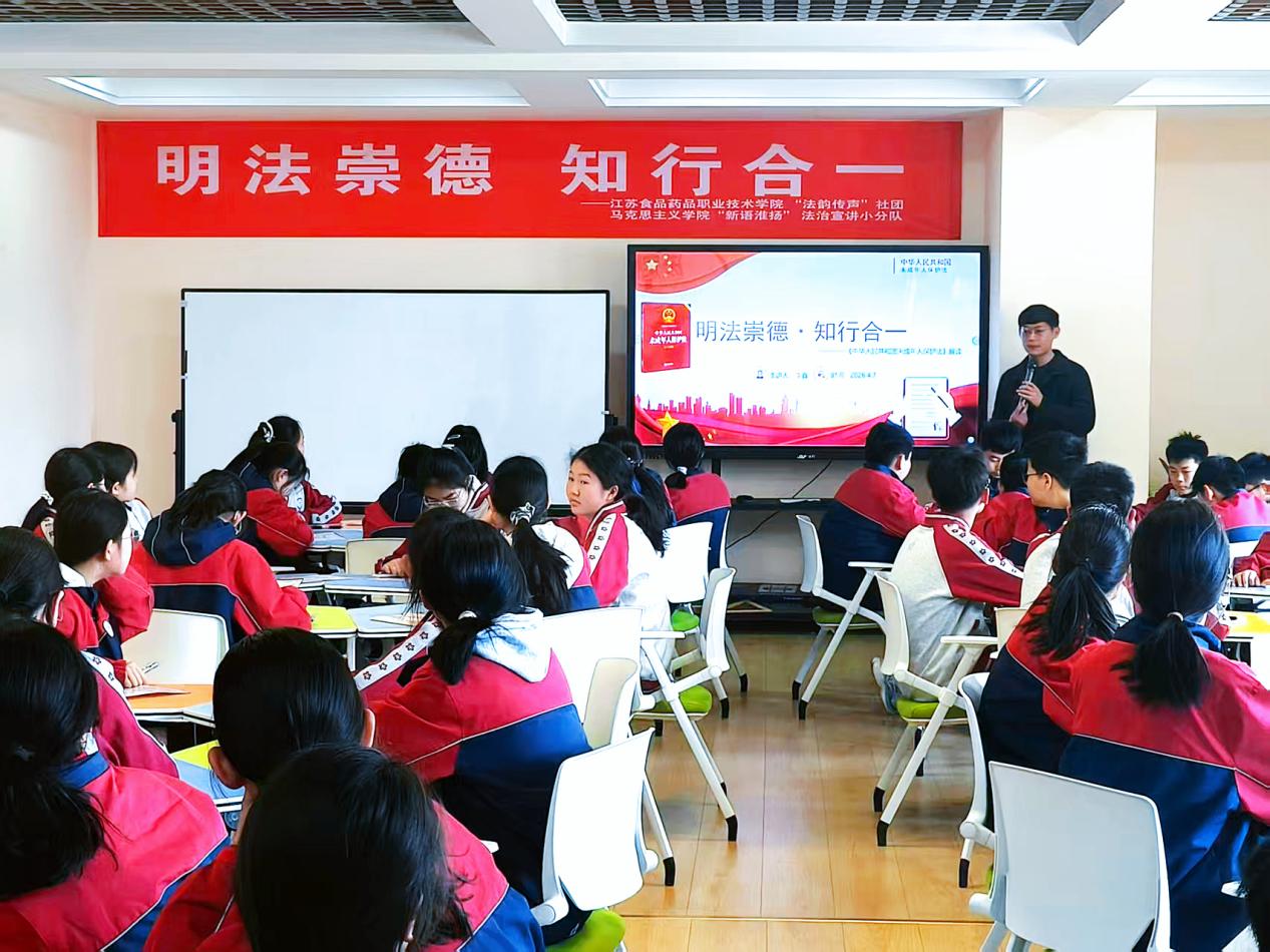 此次普法宣讲活动是马克思主义学院“新语淮扬”理论宣讲团队法治宣讲小分队深耕基层法治教育、践行社会服务责任的又一次生动实践,也是“法韵传声”社团发挥专业优势、以知促行的重要体现。“新语淮扬”法治宣讲小分队成员孙梦洁表示:“中学生正处于价值观形成的关键时期,开展有针对性的法治宣讲意义非凡。此次活动不仅让同学们学会用法律武器保护自己,也让社团成员在实践中锤炼了实践能力,增强了社会责任感。”