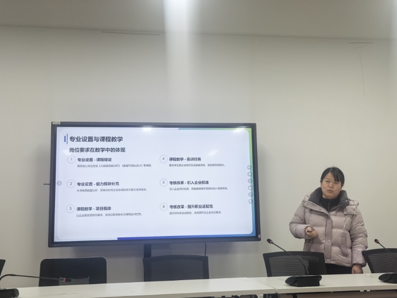 12月16日,姜莉莉老师受邀担任人工智能学院下企业实践考核评委。在考核现场,她认真听取教师汇报,细致点评他们在企业实践中的技术应用、项目完成情况及职业素养表现。姜老师结合自身教学经验,从专业能力提升、产教融合落地等角度提出建设性意见,鼓励老师将前沿AI技术与实际需求相结合,在实践中锤炼本领。她的严谨点评与悉心指导,赢得了在场教师的一致认可,为深化校企协同育人贡献了智慧与力量。