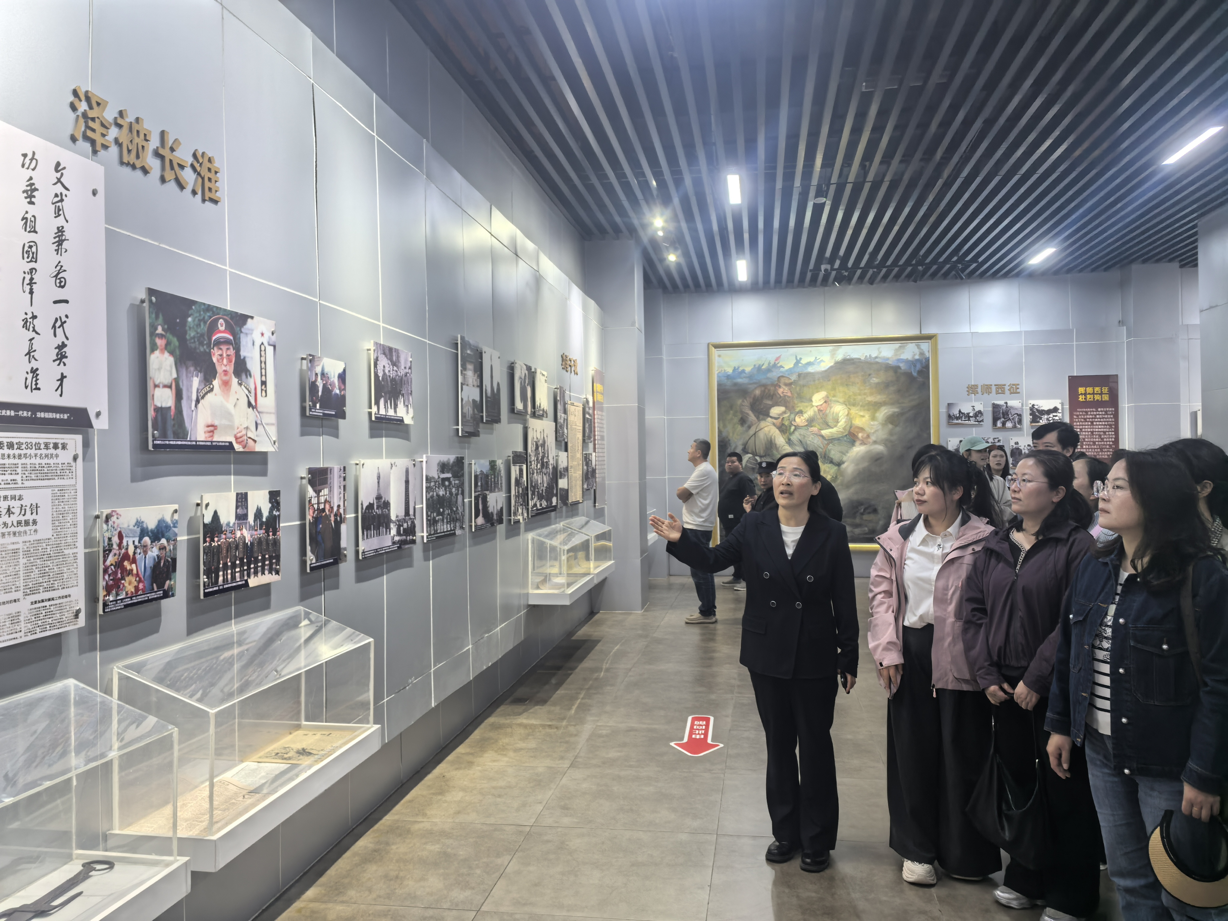 老师们怀着崇敬之情步入纪念馆。馆内通过照片、油画、雕塑及声光电等多种手段,生动再现了彭雪枫将军戎马一生的英雄事迹。瞻仰期间,马院党总支书记李乐霞在展板前讲授微党课。她结合彭雪枫将军的生平事迹,从学运先锋到统战功臣、从开辟豫皖苏根据地到血洒疆场,深入阐释雪枫精神的核心内涵与时代价值。